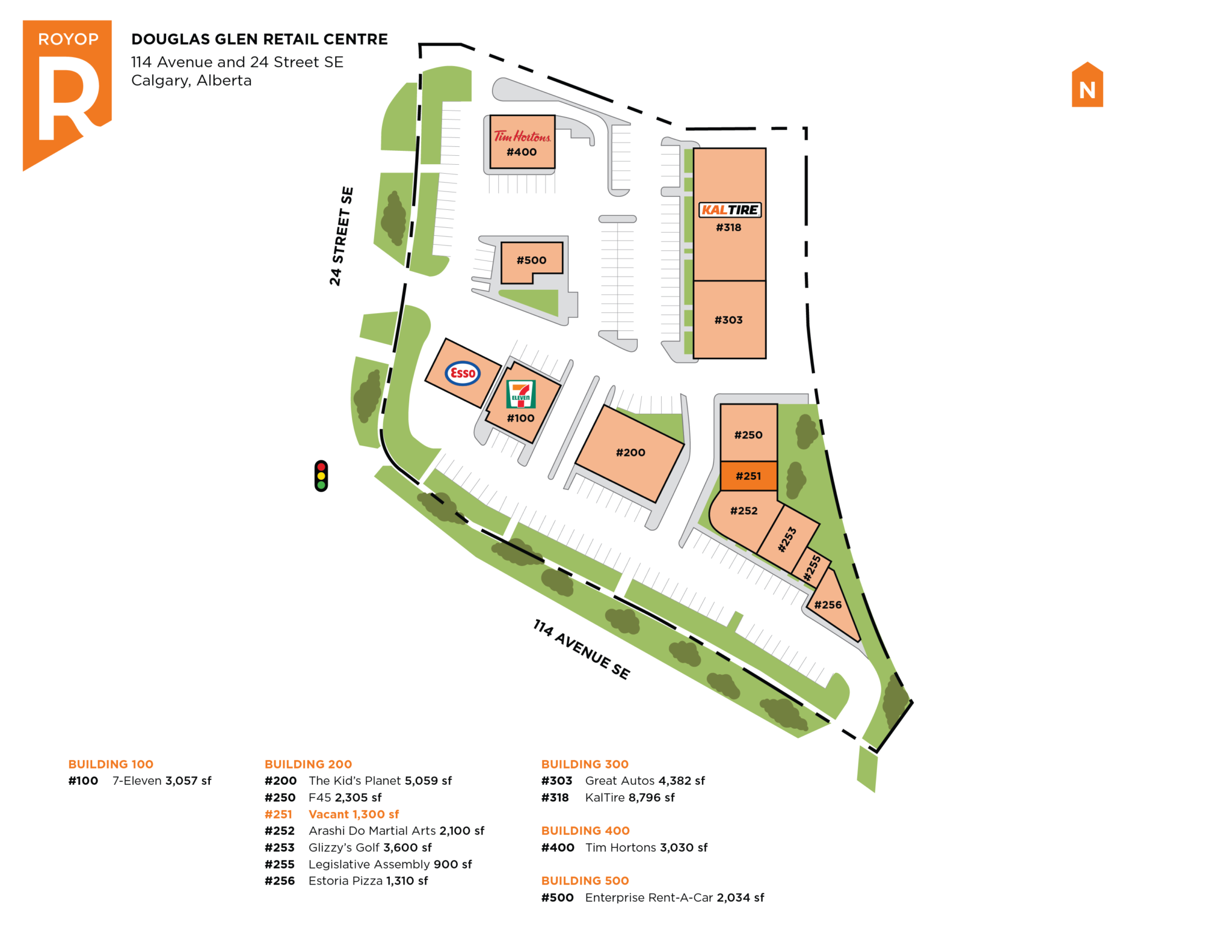 Douglas Glen is located on the corner of 114 Avenue (23,000 vehicles per day) and 24 Street (16,000 vehicles per day) with easy access/digress to Deerfoot, both Northbound and Southbound. Serving the areas of Douglas Glen, Douglasdale, Quarry Park, Riverbend and surrounding SE communities. Douglas Glen is a busy shopping centre with plenty of parking.